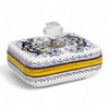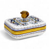 This jewelry box represents an exquisite collaboration that marries the renowned artistry of Deruta hand-painted ceramics with the elegance of handcrafted Murano glass knobs—an impeccable union.
